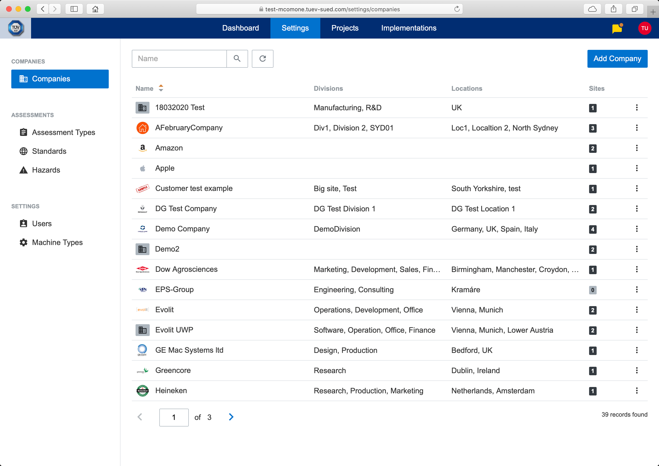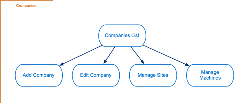 Companies represents management of companies, sites and machines.
