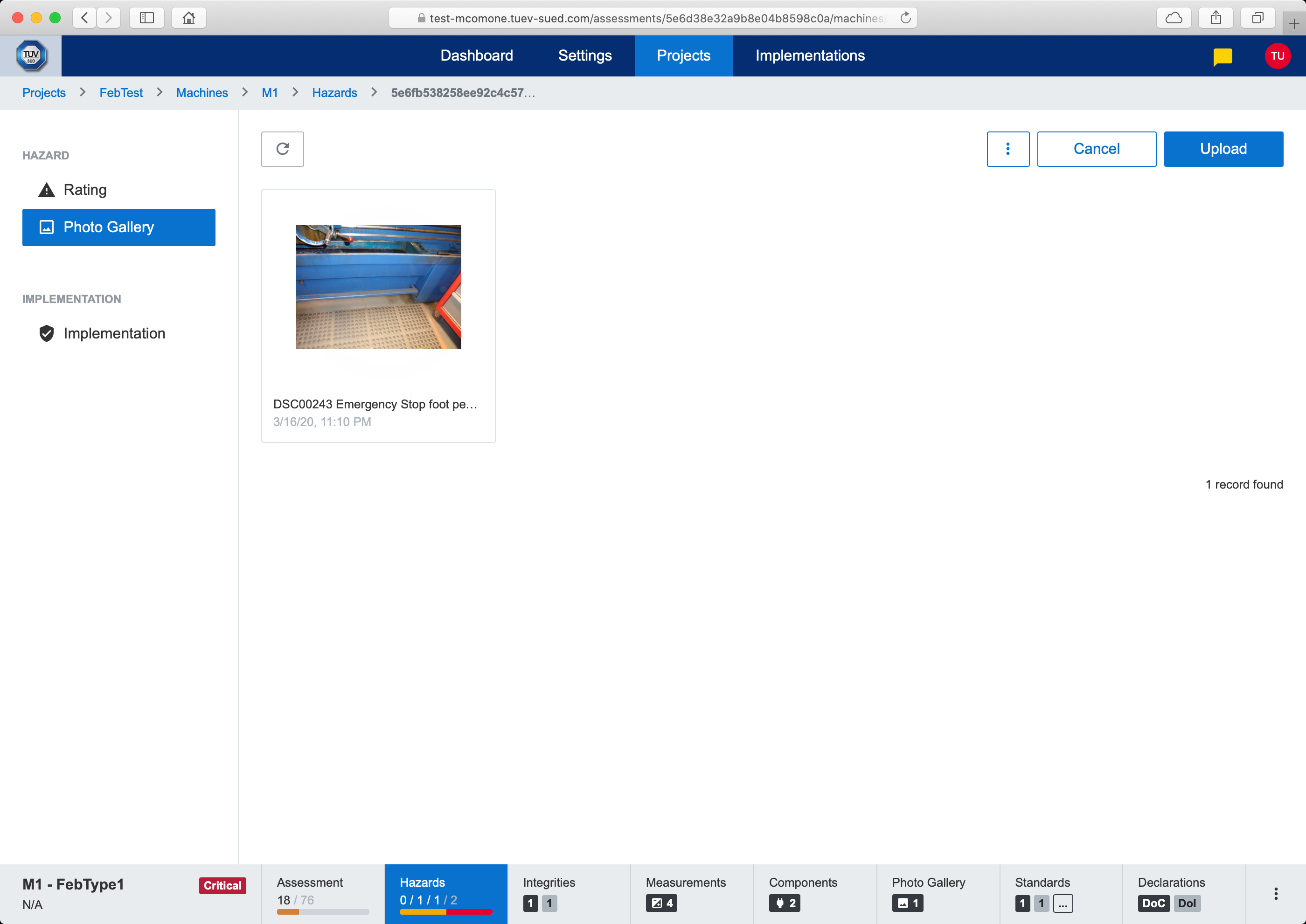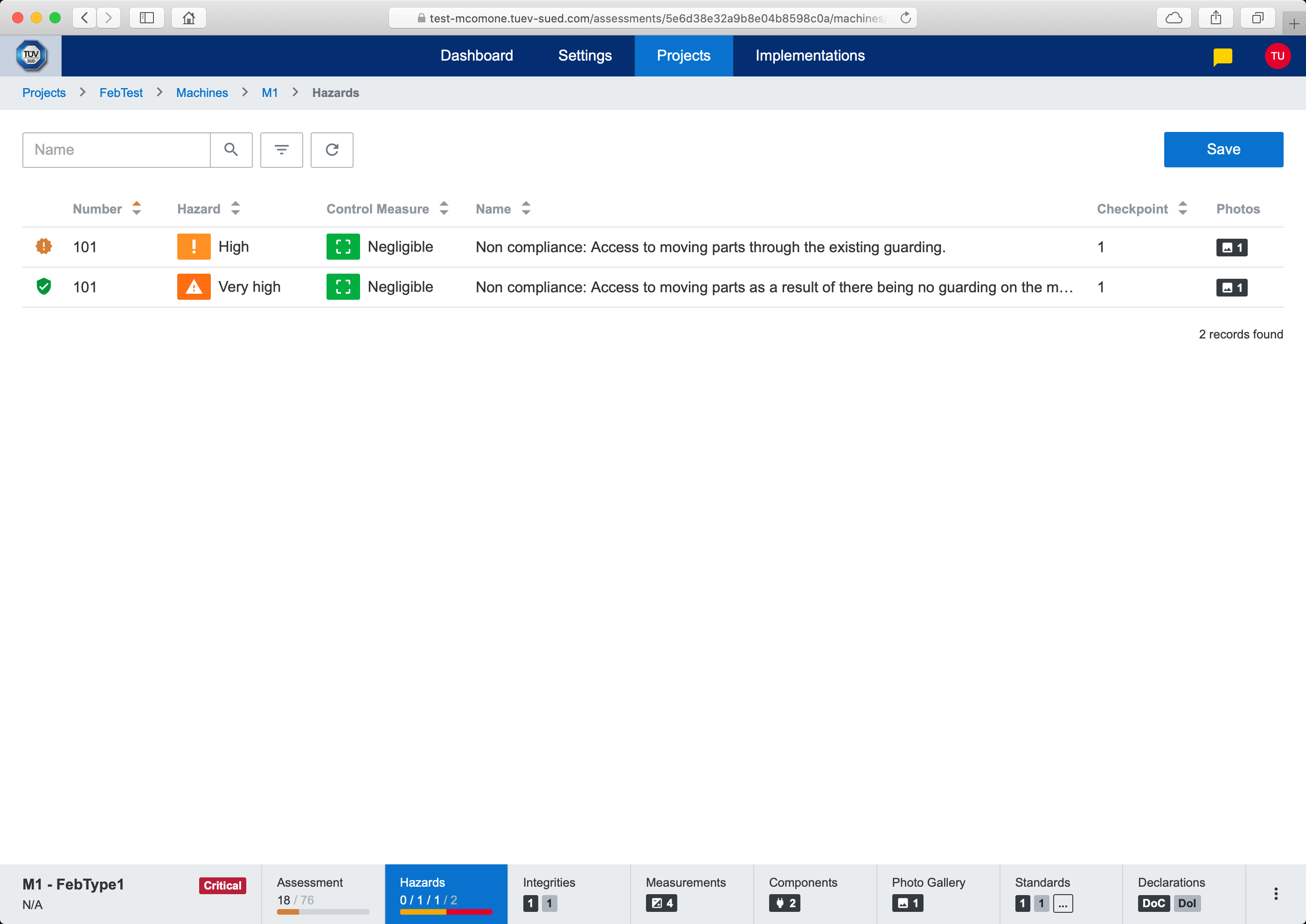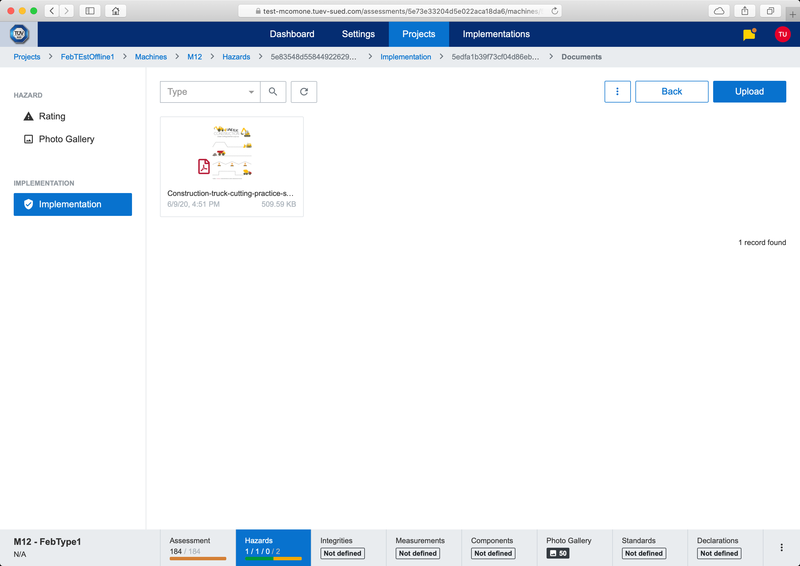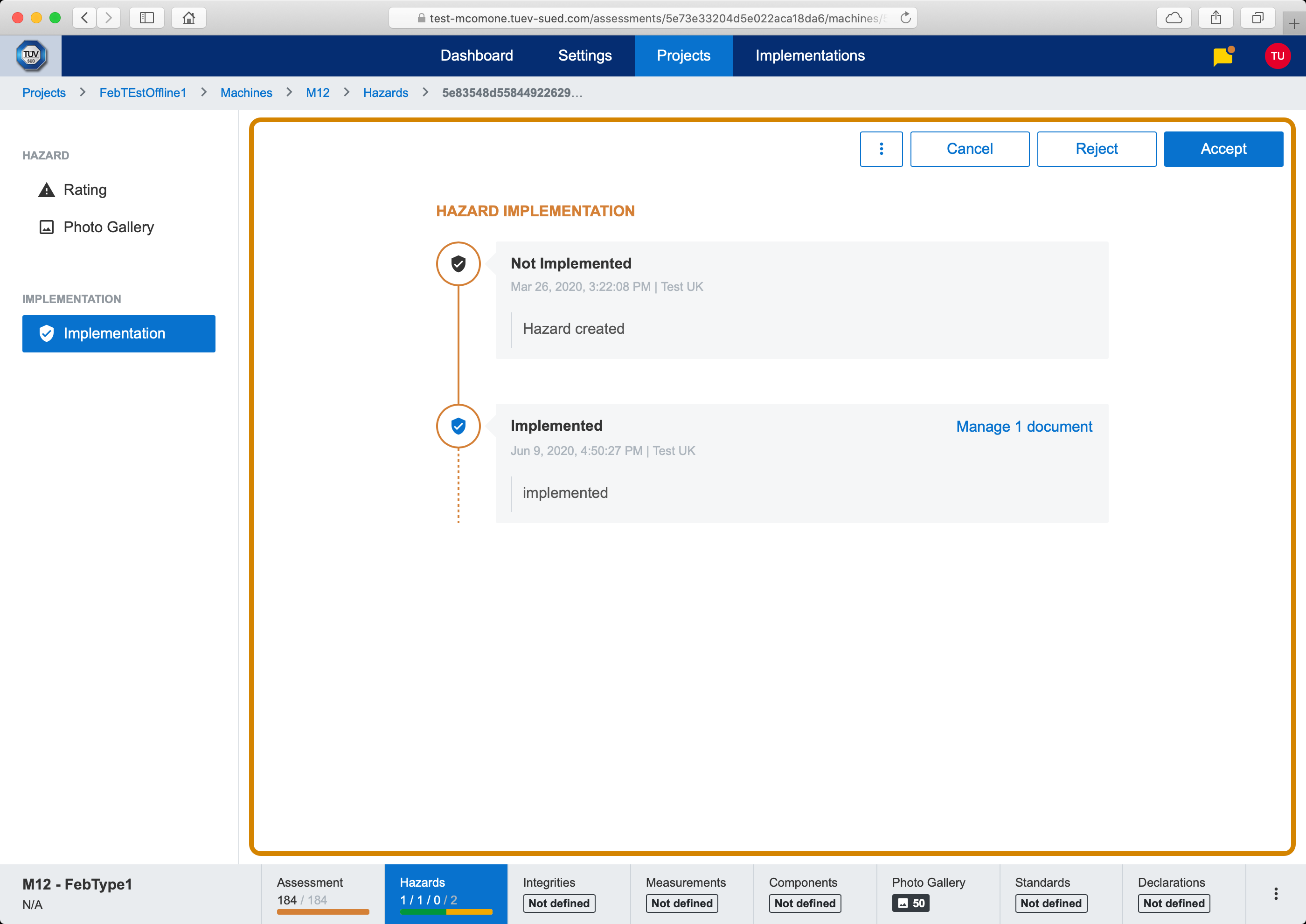 Each action represents a hazard implementation state change which is documented (who, when, what) and may include additional documents as attachments. Each action has following information: