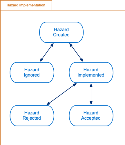 Hazard implementation action is used to change hazard implementation state. Following diagram describes possible hazard implementation states.