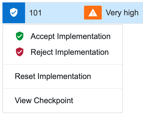 Values in this dropdown menu depends on current hazard implementation state and only relevant actions are available. Clicking on item in dropdown menu opens hazard implementation action modal dialog.