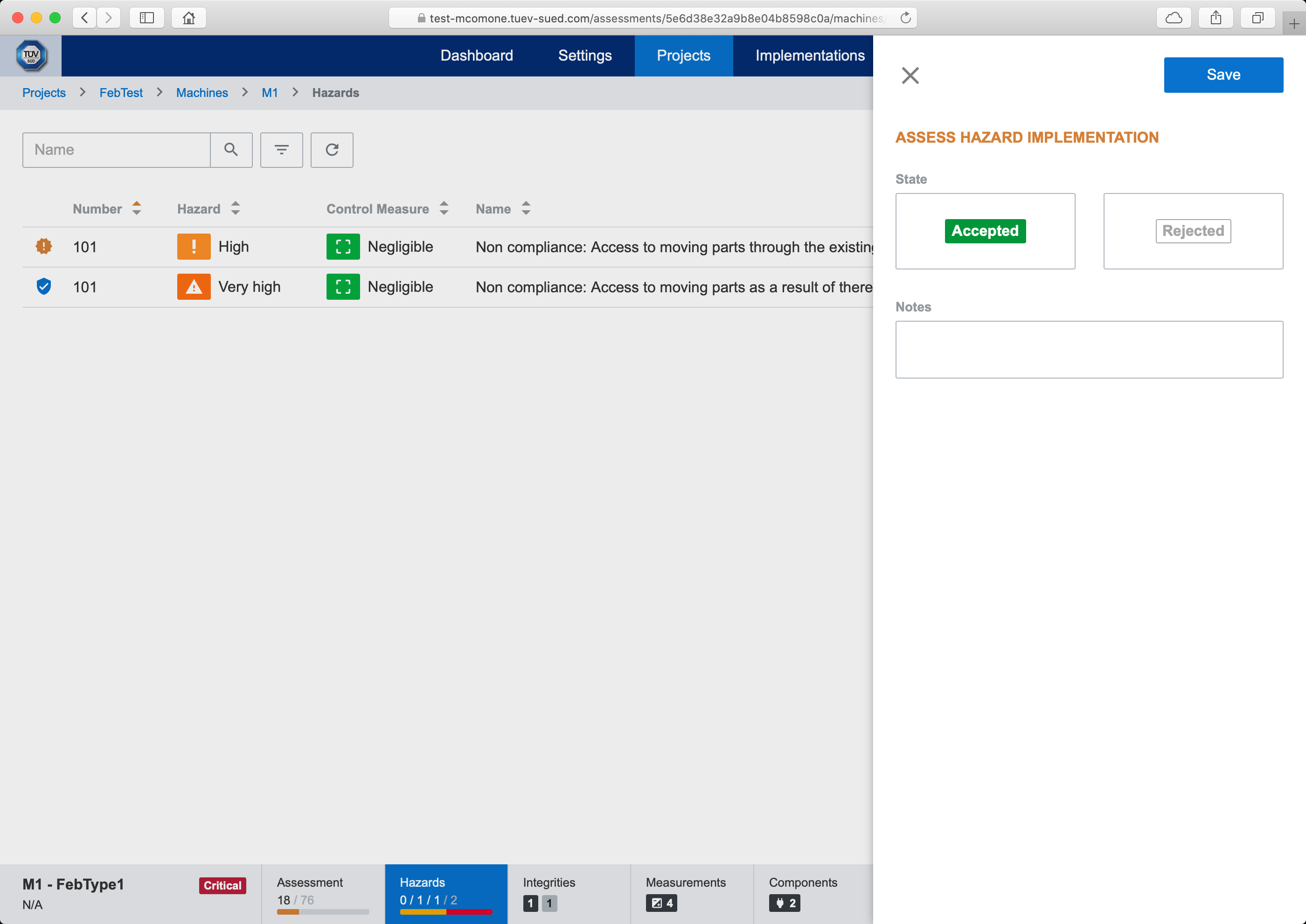 This modal screen is used to edit hazard implementation in project machine assessment.