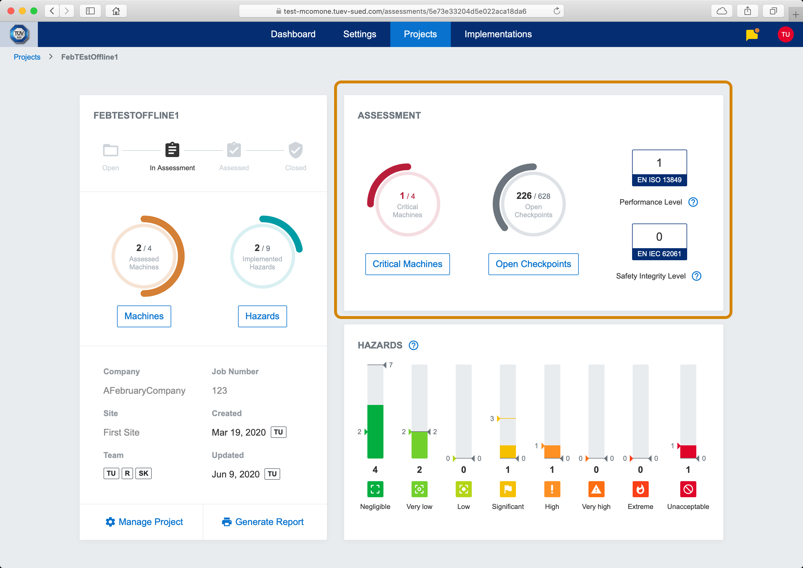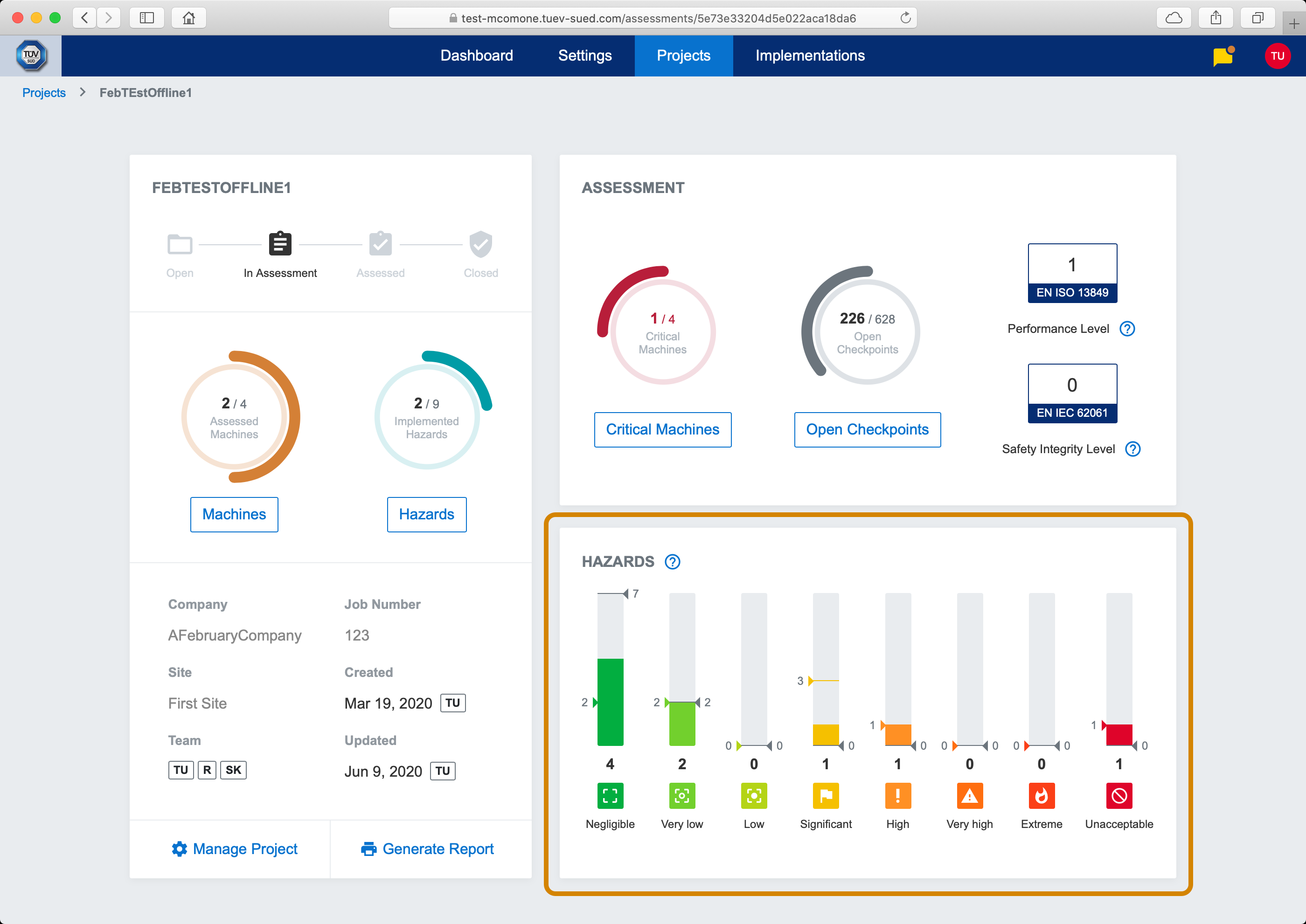 Implemented hazards represents how many of identified hazards from all project machines are already implemented.