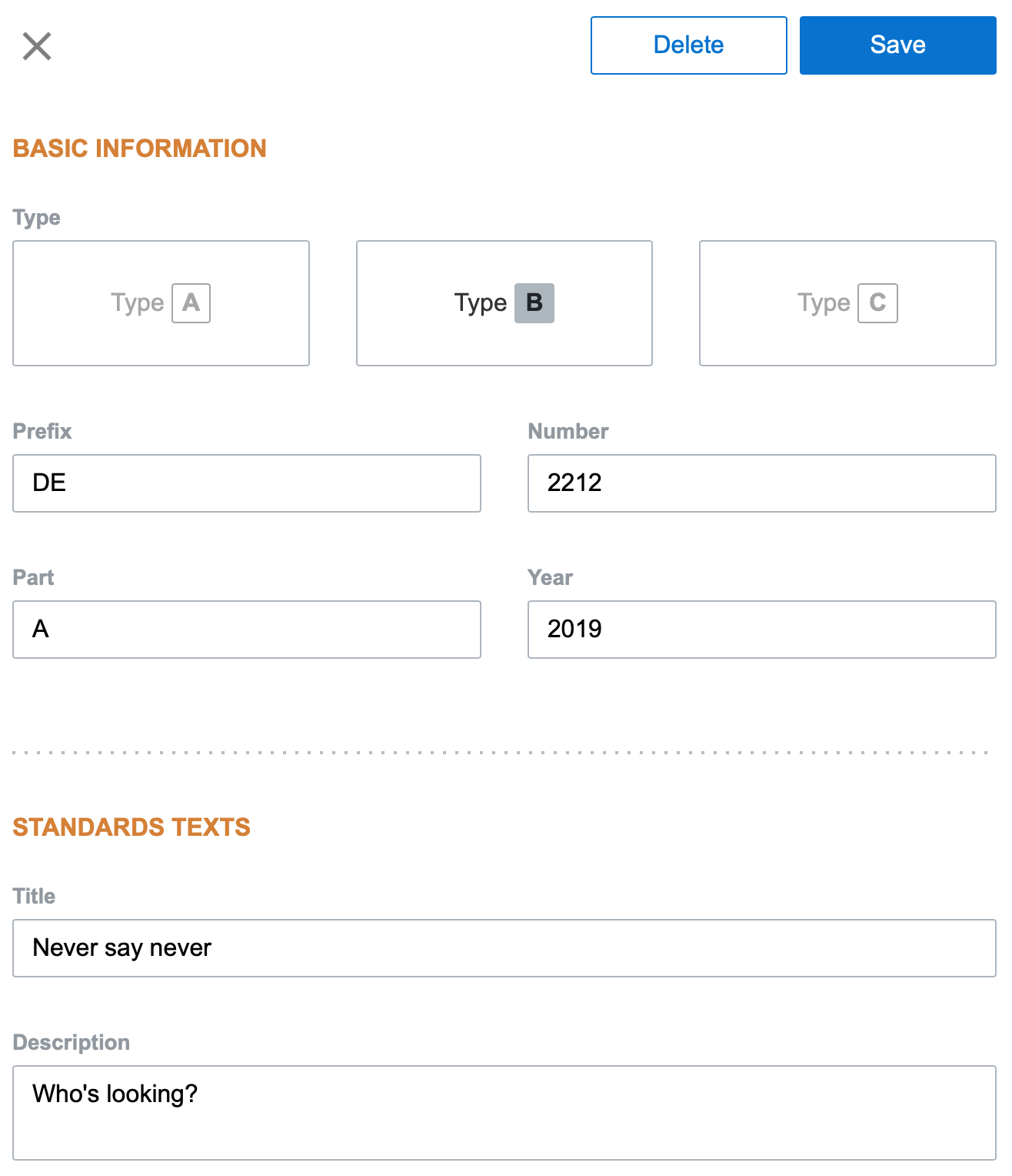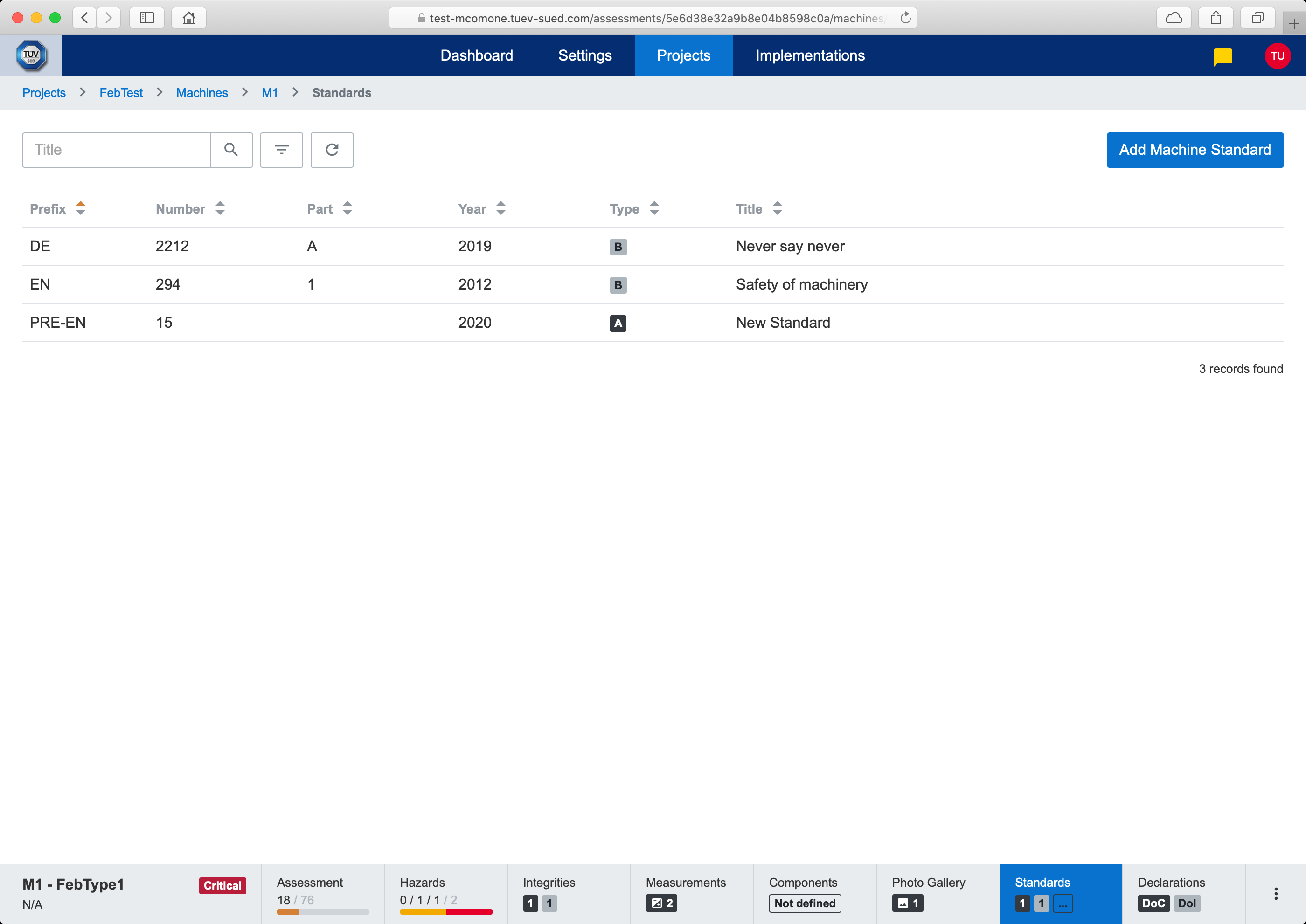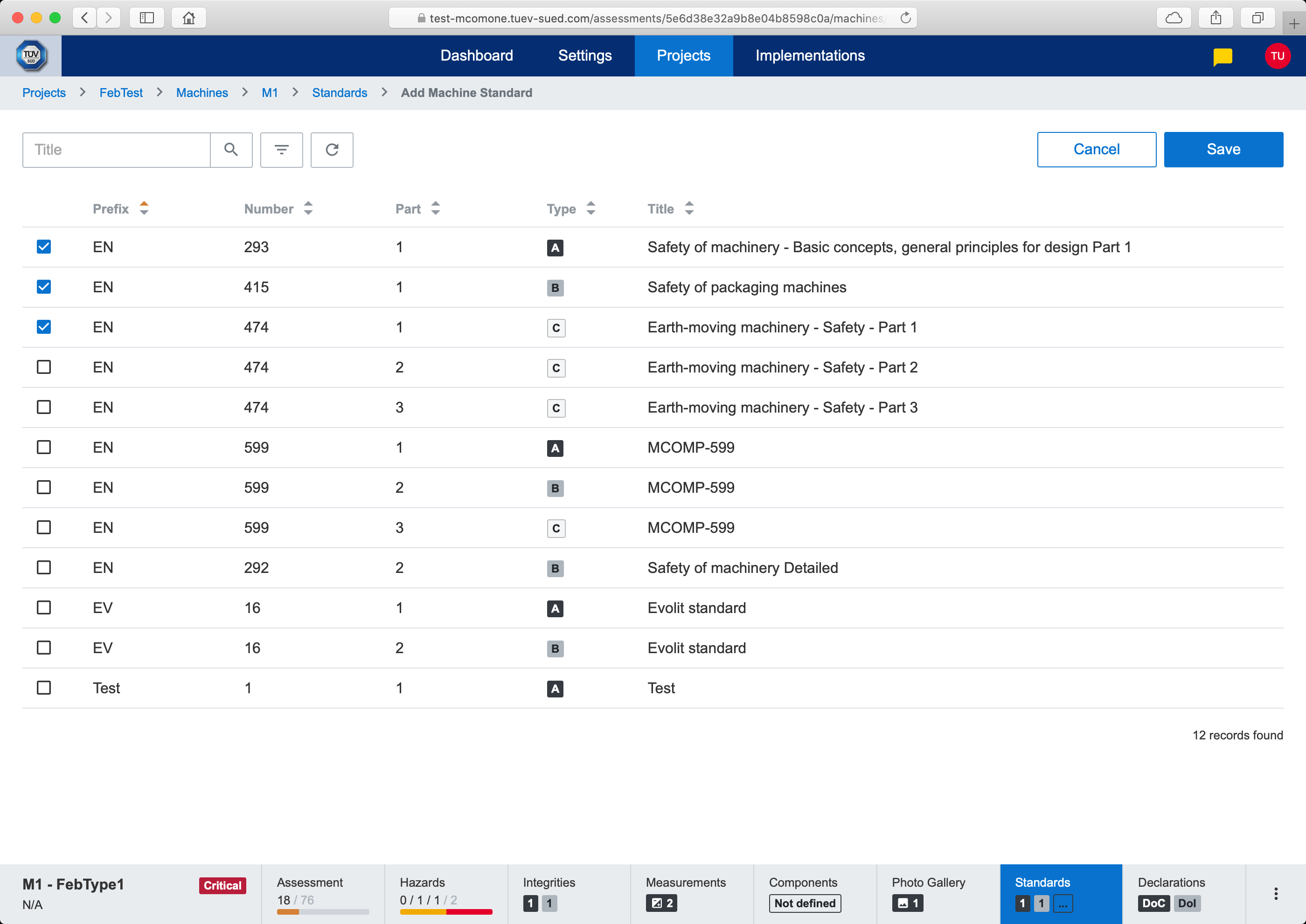 Warning: Clicking on each row in Add Standard screen will open edit modal dialog for standard from Settings Standards - i.e. editing in this modal dialog will change global standard definition NOT standard in project machine assessment.