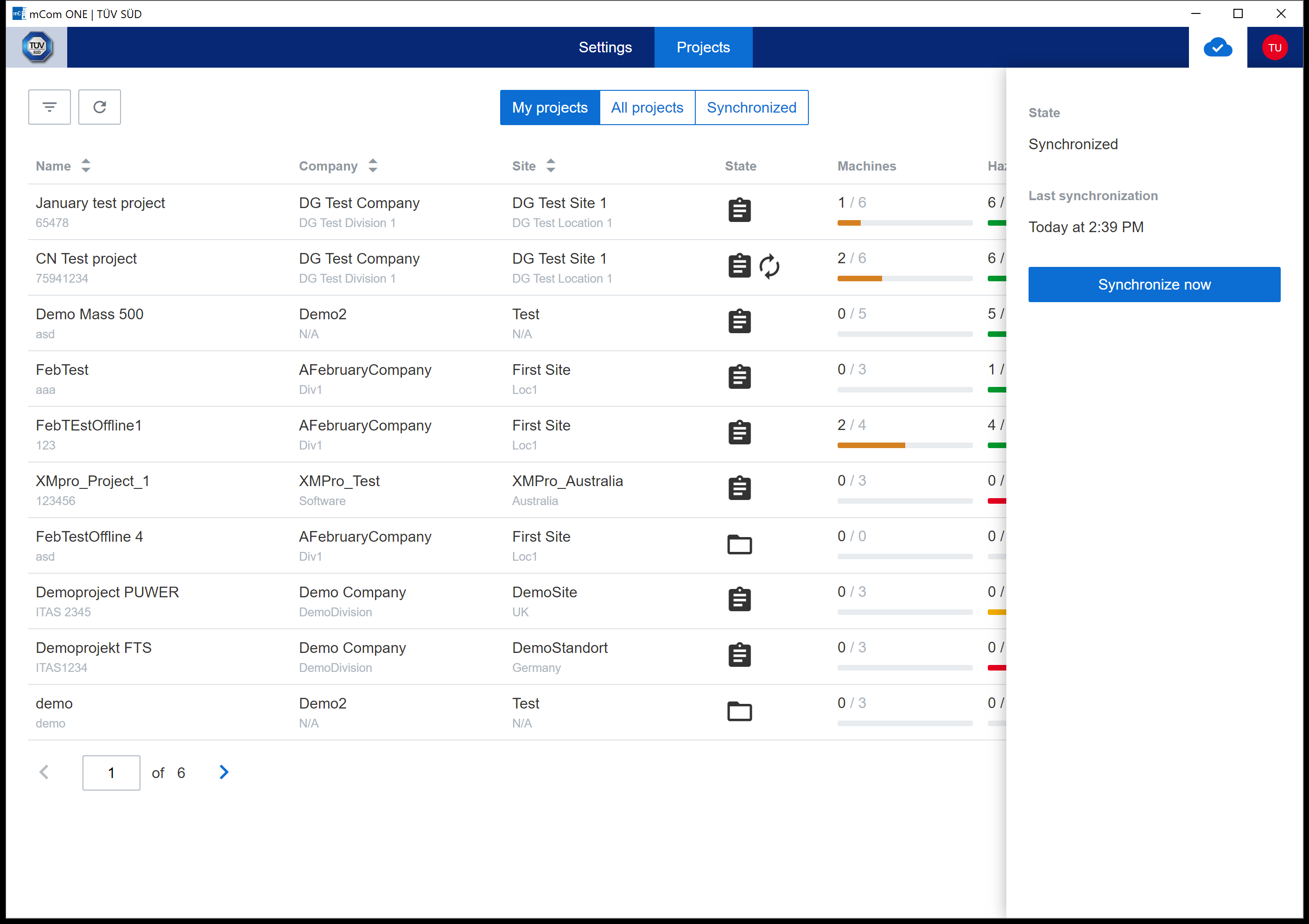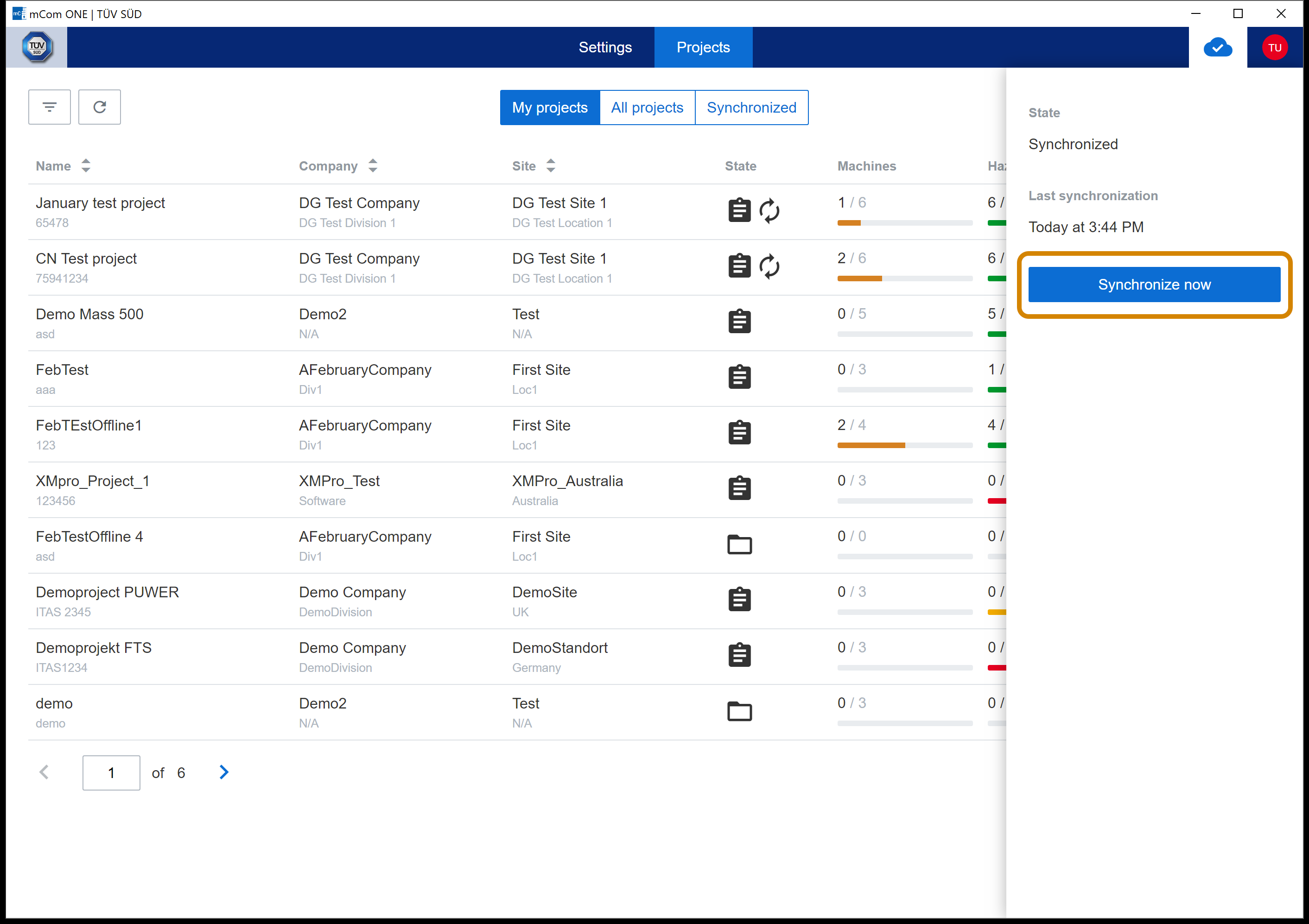 All data (except Projects) are synchronized automatically. Projects are very data intensive structures therefore they needs to have Synchronize Project option enabled first in order to synchronize its content (i.e. project machines assessments). There can be maximum 5 projects enabled for synchronization at same time. If this limit is reached, then some project already enabled for synchronization needs to be disabled first.
